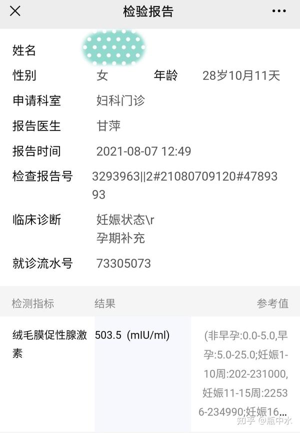 早上抽血下午才出来检验结果,因为距离医院也不是特别远,所以中午回去休息了一下,大概2点钟的时候,医院的公众号推送了一条消息,带着忐忑的心情点开了检查结果--妊娠状态,当时有点懵了(虽然试纸检查的时候心理有一点数了,但是真确认的时候还是没回过神来)。