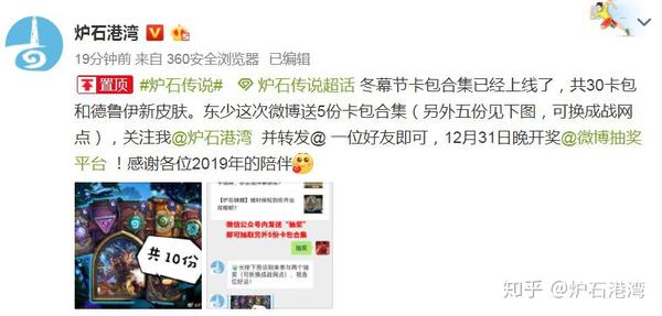 炉石港湾的置顶微博也送5份卡包合集,底部的“阅读原文”里有抽奖微博的链接。