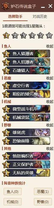 选牌助手很好理解,那就是所有随从的图鉴和阵容种族统计。